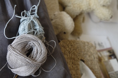 ソファの片隅にあみかけの作品がありました。