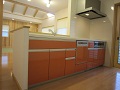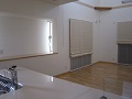 キッチンの天井に近い高い位置にある窓に打ち合わせ時、特にカーテン類を検討しなかったのですが、現場でその窓からの青空と緑を見てこれを遮る手はないよね~と思いました。